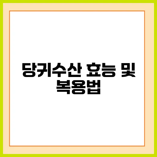 당귀수산 복용법과 최적의 사용 전략